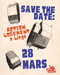 - le samedi 28 mars à Liège (place de l’Opéra) de 12 à 16h. Pour une fête foraine décalée, dénonciatrice du « logement foireux »;